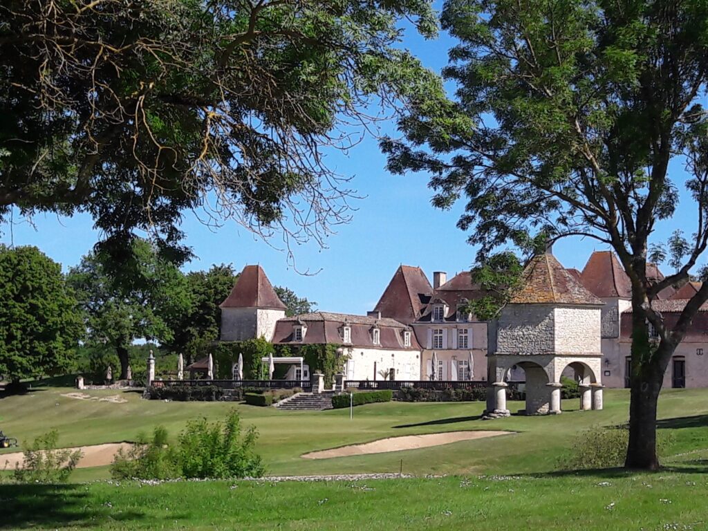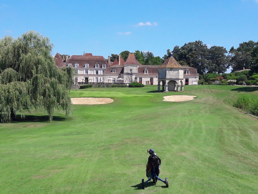 De grote baas is sinds 1 juli lid van de golfclub alhier (Golf les Vigiers). Ik snap niet zo veel van dat spelletje. Ik wil een bal vangen, maar mijn baas wil de bal alleen maar wegslaan. Rare kwiebus hoor die baas van mij. Maar hij heeft er heel veel lol in. Volgens de baas is het een van de mooiste banen van de zuidwest hoek van Frankrijk, 27 holes, prachtig aangelegd rondom een kasteel, de baan is zeer goed verzorgd, snelle greens en er is voldoende ruimte (wat mijn baas wel fijn vindt, want hij slaat de ballen nog wel eens uit koers). Hierbij een paar foto’s om een indruk te krijgen.