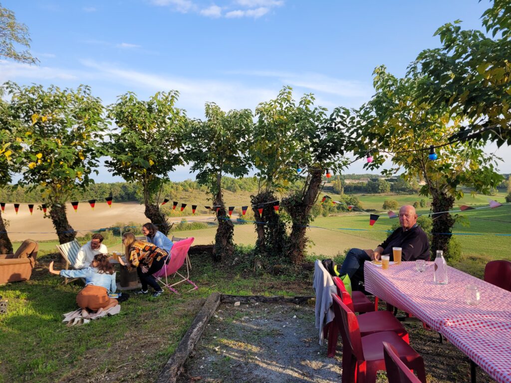 Gelukkig ook wat positiefs over de Fransman en -vrouw. Ze hebben (hier) respect voor het mijn en dijn. Je hoeft je fiets a.h.w. niet op slot te zetten, er is hier weinig diefstal. En de Fransoos houdt van eten… goed eten, mooie producten en heerlijke wijn. Eten staat centraal in het leven van een Fransman, ze geven graag geld uit voor goede en mooie producten. Daarom zijn alle lokale markten zo populair, niet omdat het goedkoop is, maar om dat het goed is en de solidariteit met de lokale producenten groot is. Eten is een familie happening, waar soms ook vrienden voor uitgenodigd worden. De zondagmiddag lunch is heilig, niet zelden 7 gangen en ze trekken er zo maar 6 uur voor uit. Ook wij hebben dit jaar de buren uitgenodigd voor een “apéro dînant”. Een borrel gevolgd door allerlei hapjes. We begonnen om 18 uur en we moesten rond 1 uur ’s nachts de buren zachtjes de deur uit duwen. Dat is de Fransoos op zijn best, zet ‘m achter de rijk gevulde dis en hij komt helemaal los.