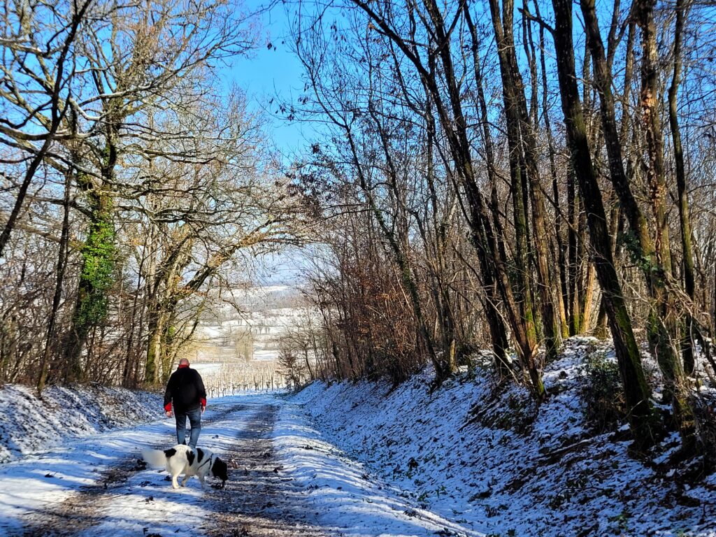 En we hebben alles voor ons zelf. Jullie zullen wel gemerkt hebben dat ik er bijna iedere dag op uit trek met mijn baasjes. In de zomer, als het warm is, loop ik meestal een rondje langs het meer (6,5 km, anderhalf uur), hierbij neem ik vaak ook nog even een verfrissende duik. Dit is een stuwmeer ligt 5 minuten rijden van ons huis, dus dat is perfect. Een heerlijke wandeling en populair onder de bevolking. Maar er zijn door het departement heel veel andere wandelingen uitgezet en de bazin zoekt dit allemaal uit. Deze wandelingen lopen door oude dorpjes, landwegen, door de wijnvelden en bossen, tussen de 5 en 16 km. Op deze tochten kom je bijna nooit iemand tegen en je hebt letterlijk alles voor jezelf. Wij kunnen hier intens van genieten en iedere wandeling is een uitje. Op een langere wandeling de rugzak met proviand mee en onderweg heerlijk picknicken. De natuur is hier afwisselend en volledig ongerept, maar de paden zijn min of meer uitgezet en worden bijgehouden. Meer dan 90% van de natuur is privé eigendom en de eigenaren staan toe dat je over hun land loopt.